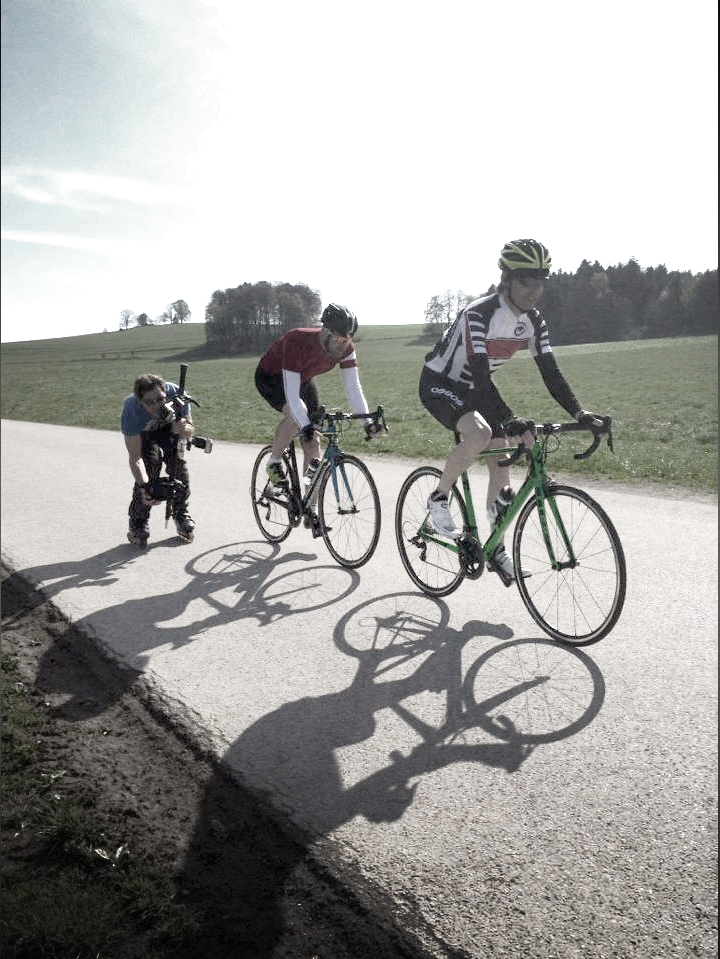 trying to catch up with racebikers on skates...